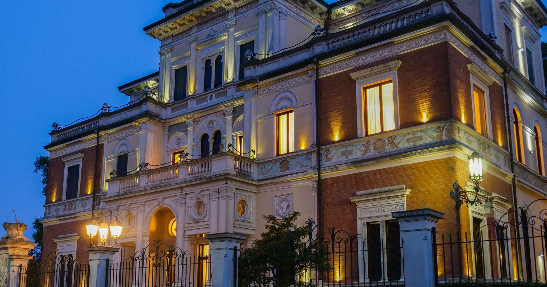All'inteno della Villa si trovano la reception, il Salone principale in stile liberty, la suggestiva Sala della Caccia, una saletta in stile veneziano e un piccolo bar.